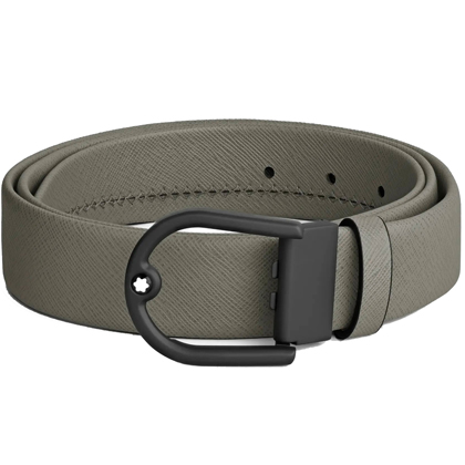 Кожаный ремень 35 мм из кожи серого цвета, пряжка в форме подковы от магазина премиальных ручек Premium Pens в Ноябрьске.