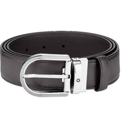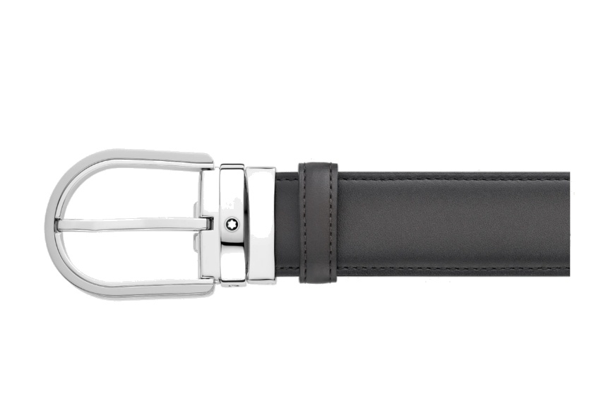 Кожаный ремень с пряжкой в форме подковы серого цвета 35 мм от магазина премиальных ручек Premium Pens в Ноябрьске.